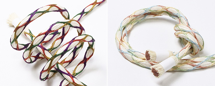 オフホワイトを軸として、相性の良い正倉院調の色彩で構成された帯締め商品の写真はお客様のモニタ環境により実物のものと若干異なる場合がございますので予めご了承ください。