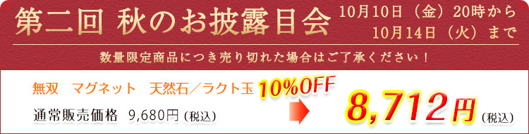 <ご注意> 心臓ペースメーカー等の体内式医療器を装着されている方はご使用なさらないで下さい。 また磁器の影響を受けるものには近づけないでください。 この商品は化粧箱にセットしてお納めさせていただきますので、 <ネコポス>は不可となり<宅急便>での対応とさせていただきます。 化粧箱が不要な場合に限り、<ネコポス>対応OKとなりますので、<備考欄>にお書き添えくださいませ。 中央のラクト玉、及び側石の天然石のお色目は微妙に一点一点異なります旨 ご了承いただきますようお願い申し上げます。 素材:本体)絹100% 中央石)ラクト玉、側石)天然石、マグネット、カニカン 全長: 約 23㎝ (カニカン含む)