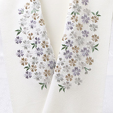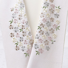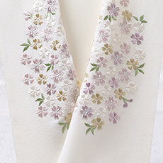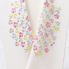 ![]() カラフルで華やかな刺繍半襟<桜づくし>のご紹介です。 刺繍の下地は京都丹後産の一巾で織られた塩瀬半襟(250 匁)を使用。 この半襟は多色使いのお品物ではございますが、各々同系の色彩とトーンを合せることにより、