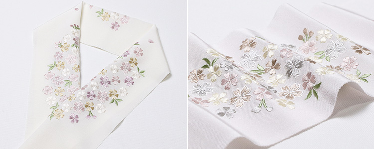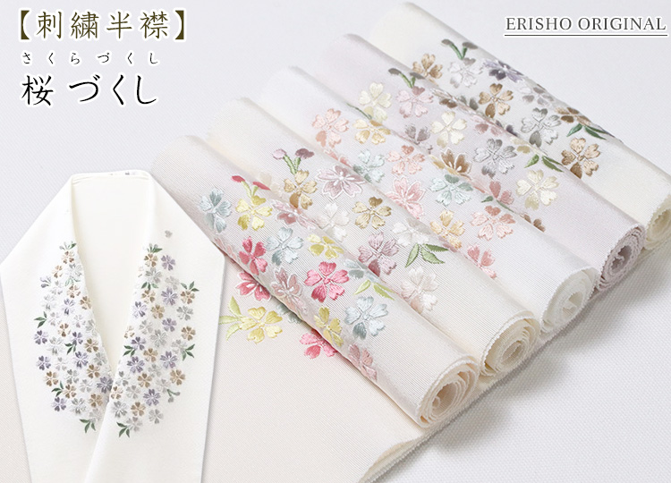 刺繍の下地は京都丹後産の一巾で織られた塩瀬半襟を使用した桜柄半襟商品の写真はお客様のモニタ環境により実物のものと若干異なる場合がございますので予めご了承ください。
