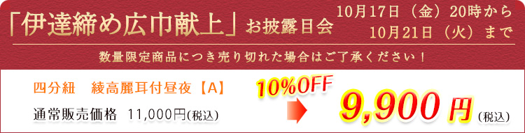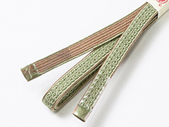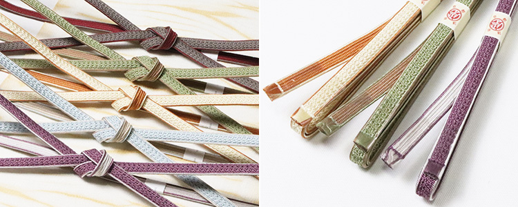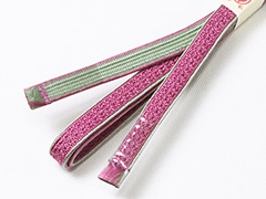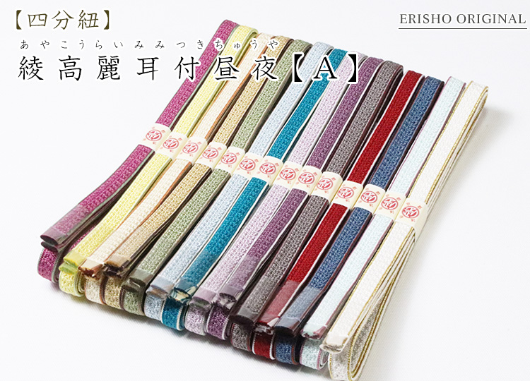 使い勝手がいいとファンも多い「綾高麗耳付昼夜」の四分紐。 新色が出来上がりましたのでお披露目させていただきます。 整然と美しく並んだ綾目の裏面は無地仕上げ。 昼夜紐=リバーシブルとして両面お使いいただける、便利な四分紐です。 また「四分紐」とは言いましても、長さ<約155㎝>で仕上げましたので、 普通の「帯締め」としてお使いいただけるお得感のある紐でございます。