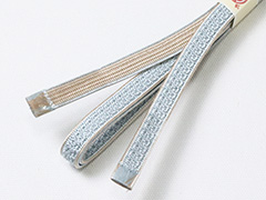 下記のカラーをクリックするとそれぞれの詳細画面が表示されます。 深赤 /白練(しろねり) (01) 11,000円(税込) 商談中 練色(ねりいろ) /赤朽葉色(あかくちばいろ) (02) 11,000円(税込) 刈安色(かりやすいろ) /夏虫色(なつむしいろ) (03) 11,000円(税込) 山葵色(わさびいろ) /丁子茶(ちょうじちゃ) (04) 11,000円(税込) 秘色色(ひそくいろ) /白茶(しらちゃ) (05) 11,000円(税込) 水色(みずいろ) /京紫(きょうむらさき) (06) 11,000円(税込) ターコイズブルー /オフホワイト (07) 11,000円(税込) 薄葡萄(うすぶどう) /錆青磁(さびせいじ) (08) 11,000円(税込) 古代紫(こだいむらさき) /霞色(かすみいろ) (09) 11,000円(税込) 梅紫(うめむらさき) /柳染(やなぎぞめ) (10) 11,000円(税込) 榛色(はしばみいろ) /蒲葡(えびぞめ) (11) 11,000円(税込) 紫鼠(むらさきねず) /真紅(しんく) (12) 11,000円(税込) 青藍(せいらん) /弁柄色(べんがらいろ) (13) 11,000円(税込) 白(しろ) /金(きん) (14) 11,000円(税込) <店主の独り言> 昨今パーツとして世間に広く流通している<通し金具>のほとんどは海外製でございます。 帯留めとはどんな物なのか?どのようにして使用するものなのか?をきちんとご理解いただけていない 海外の加工場で生産された金具が莫大な数量で輸入されてまいります。 大は小を兼ねるとでも勘違いされているのでしょうか・・・?。時代の流れとは言え、残念なことです。。 海外に発注される日本の業者さんが最初の段階でこの肝となるポイントをきちんと説明しておいてくれたら お客様も我々専門店側も振り回されずに済んだのに・・・。 キモノ上級者の方からは、せっかく気に入ったデザインの帯留めが見つかったのに、 いざ使ってみると通し金具が大きすぎて帯留めが安定しない・・・。 そんなお声も多くなり今回の四分紐 = <巾 約12㎜> をご紹介させていただく次第でございます。