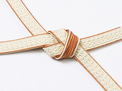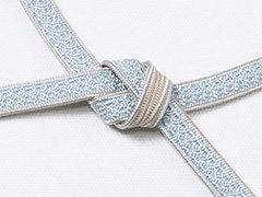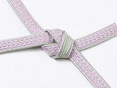 細かな綾目を組み表した表面の両サイドに約 1㎜ の <耳>を付け、 裏面はその<耳>と同色の無地で仕上げた、 「四分巾 = 約12mm」の< 綾高麗耳付昼夜 > の羽織紐。 紐の両サイドをはしる1mmの「耳」部分のお色がアクセントになりますし、 また四分巾のなで存在感のある個性的な装いが期待できます。 是非その美しい綾目から生まれる陰影をお楽しみください。