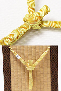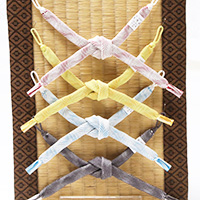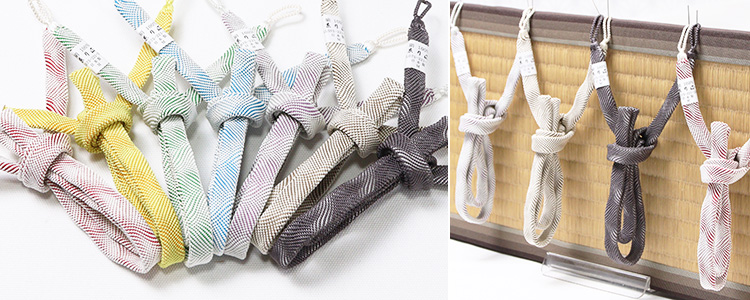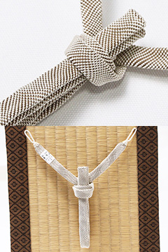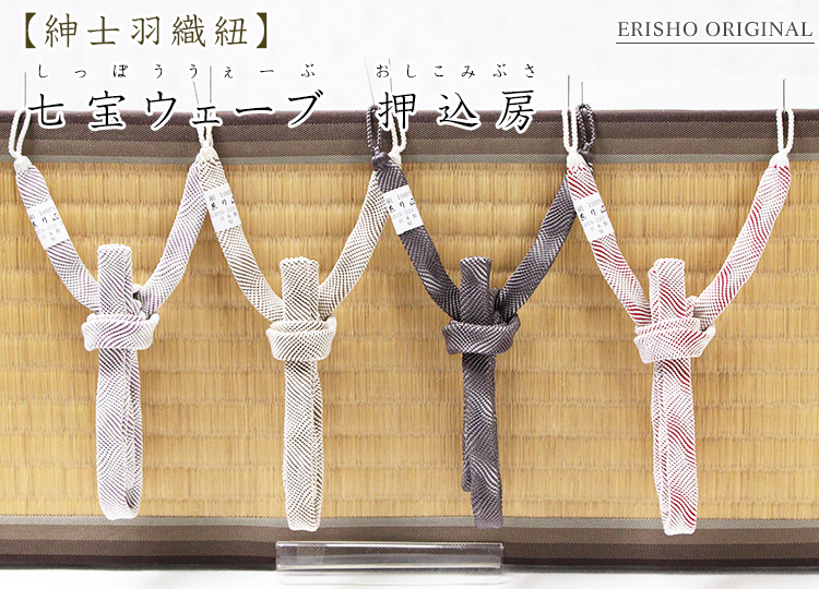 下記のカラーをクリックするとそれぞれの詳細画面が表示されます。 黄支子色(きくちなしいろ) /小麦色(こむぎいろ) (02) 15,400円(税込) 白 /常磐緑(ときわみどり) (03) 15,400円(税込) 白 /花浅葱(はなあさぎ) (04) 15,400円(税込) 絹鼠(きぬねず) /古代紫(こだいむらさき) (05) 15,400円(税込) 亜麻色(あまいろ) /江戸鼠(えどねず) (06) 15,400円(税込) 消炭色(けしずみいろ) /オフホワイト (07) 15,400円(税込) 【 男性用「羽織紐」の蘊蓄 】 男のキモノ姿に不可欠な羽織紐ではありますが、 「探してもなかなか気に入るのが見つからないなぁ・・・」 こんな風にお感じのお客様も多いのではないでしょうか? 羽織紐はいまや貴重品と言っても過言ではございません! その理由を簡単にご説明させていただきますので ご興味のおありのお客様はお付き合いくださいませ。 組紐の羽織紐は、女性の帯締めと同様の加工を経て出来上がります。 一本の「帯締め」よりも短く小さな「羽織紐」は それに比例して単価も低く設定せざるを得ません。 二本で一組となる羽織紐は、 羽織の乳に通す「ツボ」付けという特殊な加工も必要で かなりの手間がかかるのですが、単価的には帯締め一本のそれよりも 低く設定するというのがこれまでの業界の慣習です。 そういう慣習もあり、組紐を手掛けられるメーカーや職人さんたちにとっては 手間がかかる割に儲けの薄い羽織紐よりも 帯締めだけを創って販売した方が手っ取り早く儲けも多いことになります。 なので必然的に羽織紐が誕生する機会が限られてしまい お客様も迷うほどのデザインや色から選ぶことが叶わないのが現状です。 弊店の場合、帯締めを創る「ついで」に羽織紐を作製するよう心掛けております。 「ついで」というと聞こえが悪いかもしれませんが、 このようなものの考え方をしてプロデュースしていかないと 「羽織紐」に代表されるような、和装小物というカテゴリーの中においてもまだ小さな小物たちは 世の中に出回らないことになるでしょう。 最近弊店では羽織紐を目当てに店舗にご来店いただくことが増えました。 ネット通販での羽織紐のご購入も急増してきたことは有り難い話です。 お好みは千差万別ですし、多少の妥協は必要かもしれませんが、 「見つけた時が買い時」と言う考え方でご購入いただければと思います。 完売した商品を再度創りたくても職人がリタイアされて創れなくなっているかもしれないのですから。 和装小物専門店を生業とする私の意地と使命感で品質の良いものを リーズナブルなお値段でご提案させていただきたいと今日も知恵を絞っております(笑) これからもお客様のご期待に沿えるよう努力してまいりたいと思っております。 何かご意見等がございまいましたらお気軽にお聞かせください。 ゑり正 9代目店主