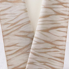 また絞り加工特有の伸縮性がありますので、 シワになりにくい美しい襟元の演出が期待できます。 なお、既に充分水を通してありますので、お家でお洗濯していただいても ほとんど縮む心配もございません。 草木染のお品物は、お使いいただくほどにお色目の経年変化が楽しめるのも魅力のひとつです。 科学染料では表現できない、その独特の奥深いお色をお楽しみいただければ幸いです。 紬や大島等の襟元に個性を添えてお出掛けください。 きっと出会われたキモノ愛好家の皆様から熱い視線を集めるはずです。 ※一点一点絞りのお品物であり、また同じ植物を使っていても一点一点 発色に差異がございます旨ご理解くださいませ。 <お洗濯に関して> 漂白剤の入っていない洗剤でネットに入れて単独で洗濯し陰干しをしてください。 経年の色の変化は草木染めの特徴です。 そのことをお含み置きいただきお楽しみいただければ幸いです。