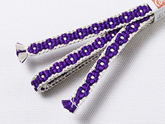 <たかが三分紐、されど三分紐>三分というその細く長い紐に秘められた奥深い世界。 きっと出会われる方々に、「素敵な紐したはるわ・・・」と一目置かれるはず。 この商品は、諸々の下準備を行った上でも、 一本組み上げるのに、二日間要します。 一度に大量にできる商品ではなく、もちろんどれも一点モノです。