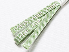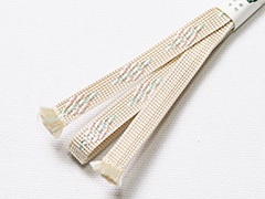 綾竹組みの特性を活かして、 銀糸と色糸三色を救うように引っ張り出して菱形(ダイヤモンド柄)を形成してあります。 表面に対して裏面は無地使い可能なリバーシブル。 三分紐は熟練職人の減少もあり制作現場が大変混み合っており、 全国的に品薄アイテムとなってきております。 再制作に非常に時間を要する状態でございますので、 お気に入りのお色がございましたらお早めにご入手しておいてください。 持っているだけで眺めているだけで幸せな気分になれる・・・ 使いやすかったから、出合った方々にほめてもらったから、次回もついつい使いたくなる・・・ そんなふうに感じていただける小物創りをこれからも続けてまいりたいと考えております。 量販店とは異なる小物専門店ならではの細部のしつらいをお楽しみいただければ幸いでございます。  <帯留めもいろいろございます。こちらからご覧ください。>