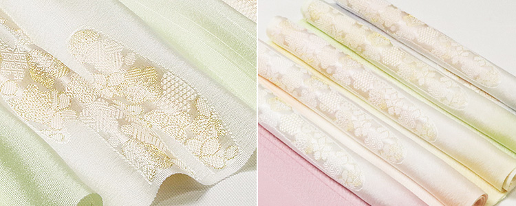 付け下げや訪問着、色無地等、フォーマル全般の帯周りに 上品に馴染んでくれるはず。