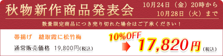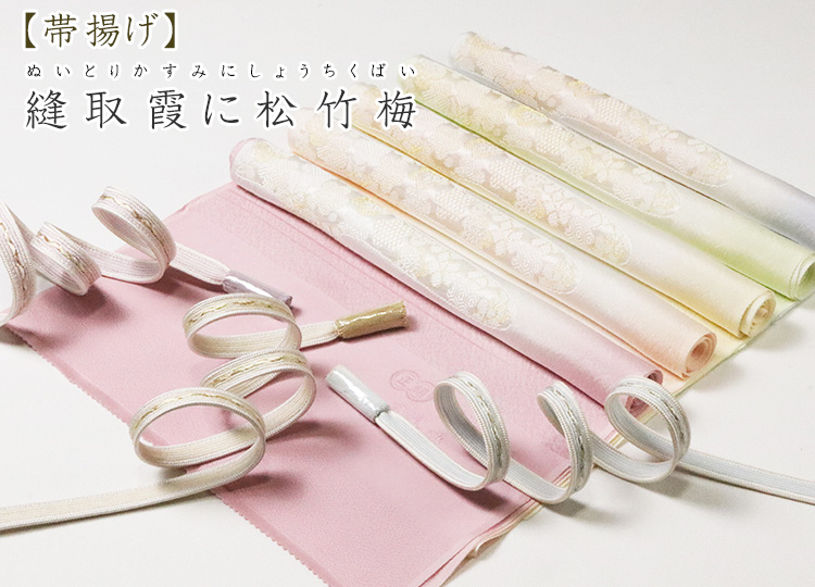 和装小物 > 帯揚げ > 帯揚げ 縫取霞に松竹梅