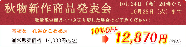 紬や大島等、カジュアルな装いの帯周りに、 アクセントを効かせたコーディネートにお役立てください。