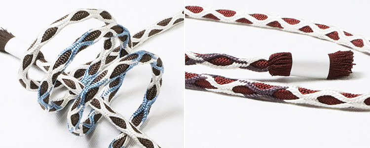 太さ約9㎜と細めのフォルムに籠目が映える、ユニークな帯締めです。