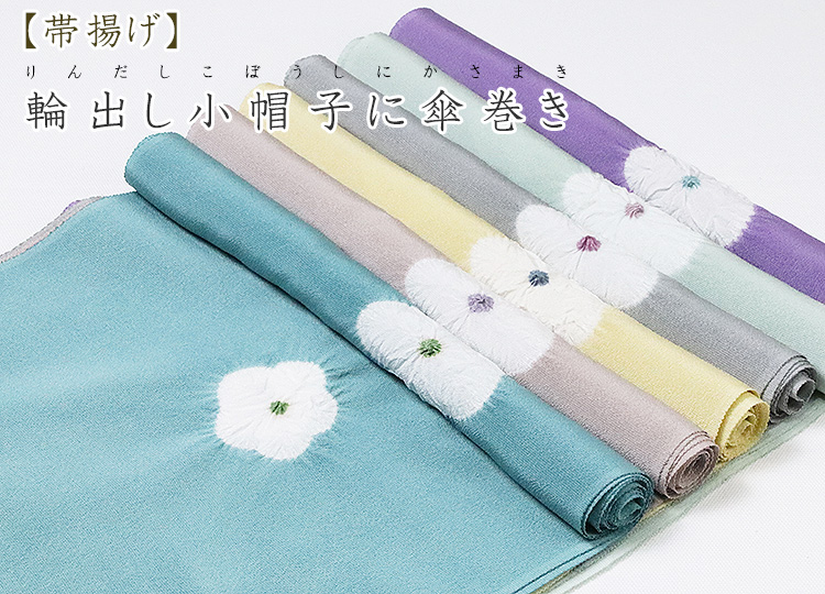 片面に梅を5ツ(輪出し小帽子3ツ、傘巻き2ツ)絞った帯揚げ和装小物 > 帯揚げ > 帯揚げ 輪出し小帽子に傘巻き 商品の写真はお客様のモニタ環境により実物のものと若干異なる場合がございますので予めご了承ください。