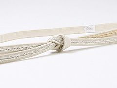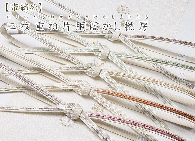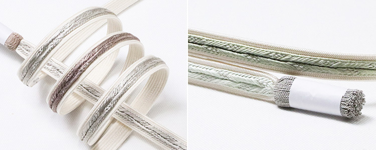 ![]() 角朝組みをベースに、立体感のある組紐を重ねた形状の帯締め。 片方にぼかしが入っており、着用時には遠慮がちに顔をのぞかせます。