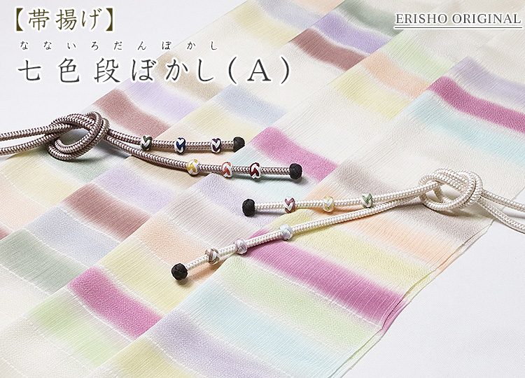 <縮緬>と<楊柳>が< 約4㎝ >間隔で交互に織られた帯揚げ和装小物 > 帯揚げ > 帯揚げ 七色段ぼかし(A) 商品の写真はお客様のモニタ環境により実物のものと若干異なる場合がございますので予めご了承ください。