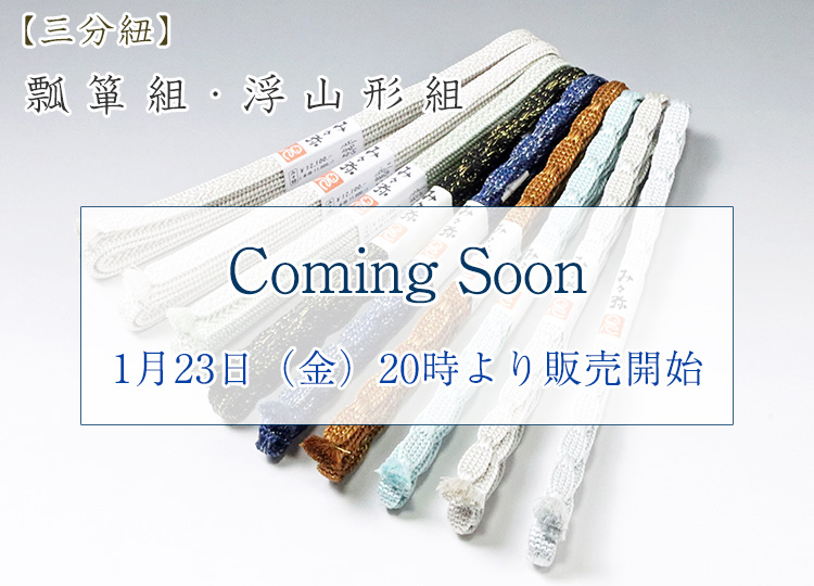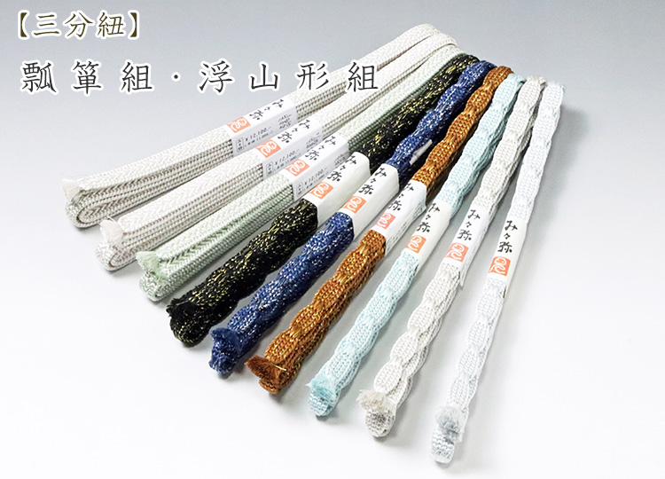 ▲ 帯留用の二分・三分・四分紐は手結びでは、どうしても結び目が緩みがちというお声も聴かれます・・・ |