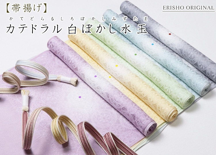 ![]() 大聖堂を意味する「カテドラル」を意匠化した帯揚げです。 地紋の輪っかを所々、まるでホタルぼかしのように白くぼかし、