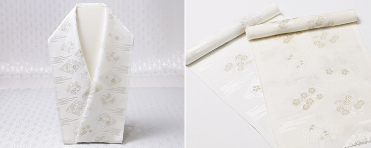 とても珍しい縫い取りの半襟のご紹介。 付下げや訪問着、色無地といったフォーマルな装いにお勧めです。 京都の和装小物専門店の < ゑり正 > がプロデュースさせていただいた