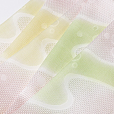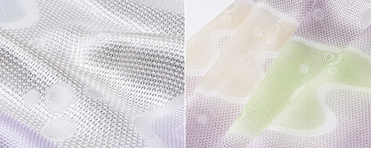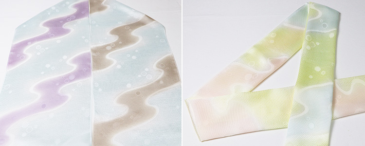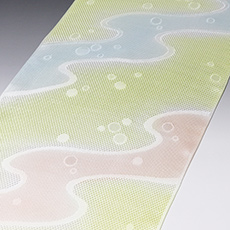 ![]() 京都丹後で丁寧に美しく織られた「メッシュ」織りの帯揚げ。 今回の作品は、お太鼓部分の「天」を境に、