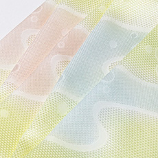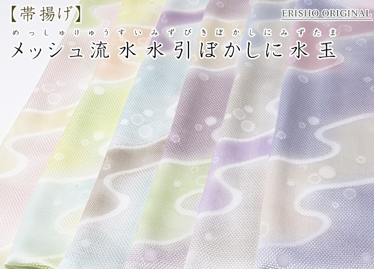 京都丹後で丁寧に美しく織られた「メッシュ」織りの帯揚げ和装小物 > 帯揚げ > 帯揚げ メッシュ流水水引ぼかしに水玉 商品の写真はお客様のモニタ環境により実物のものと若干異なる場合がございますので予めご了承ください。