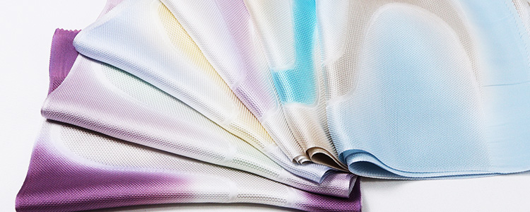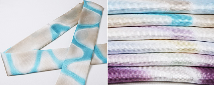 ![]() 京都丹後で丁寧に美しく織られた「メッシュ」織りの帯揚げ。 生地の中央を強弱を付けながら走る流水柄に沿って刷毛染めした一品。