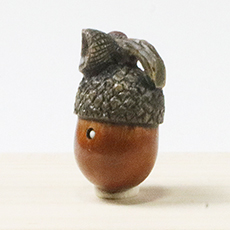 漠然とそんなことを思いながら、ひょんなことで根付師<岡壱氏>と出会ったのは三年ほど前。 私と年齢も近いこともあり、様々な話をするなかで弊店の取り組み姿勢も理解していただき 一か月に一度のペースで作品を分けていただけることになり現在に至ります。 ここでご紹介させていただく根付の素材は、<黄楊(つげ)>を中心に、 <黒檀><象牙>がございます。 いずれの根付も、手に触れて使い込むにつれて熟(な)れてまいりますので、 ご購入いただいた状態とはまた一味違う経年変化の表情がお楽しみいただけます。 ですので、ご購入当初にお品物の写真を撮っておかれますと、半年後、一年後、と先々の 表情の違いが確認していただけると思います。 素材を掘り進めながら偶然出会う<木目>や<節>をそのモチーフに相応しいように 最大限に活用し、また天然素材ならではの<傷目>までも 最終的に仕上がった根付のひとつの<景色>と馴染むように仕上げられています。