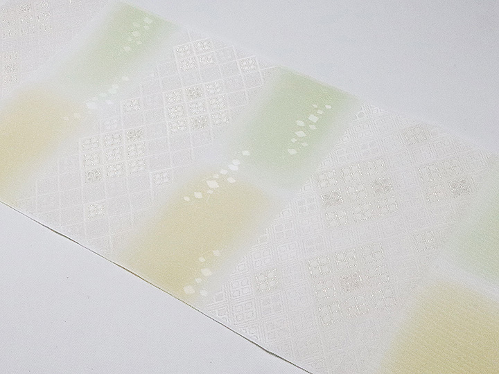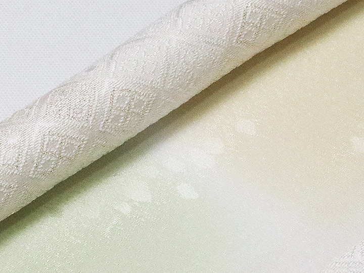 和装小物 > 帯揚げ > 帯揚げ 縫取しあわせ菱 > 帯揚げ 縫取しあわせ菱 鳥の子色(とりのこいろ)/裏葉柳(うらはやなぎ)(02)