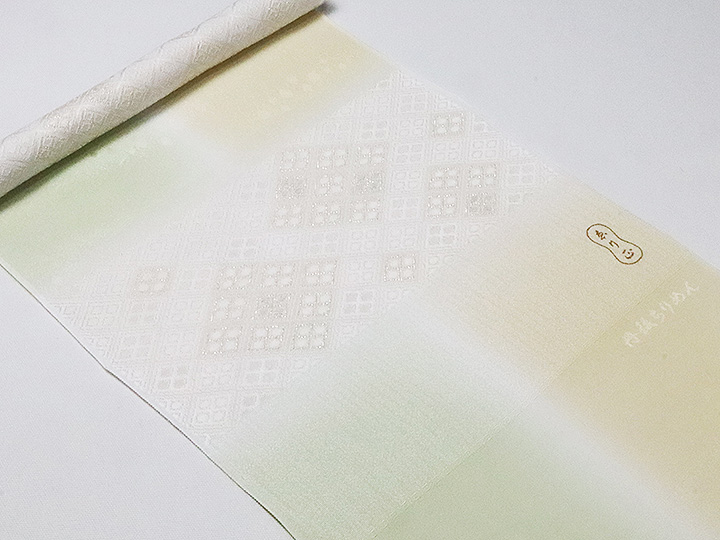 帯揚げ 「縫取しあわせ菱」 カラー: 鳥の子色/裏葉柳(02) 素材:絹100%(一部金属糸使用) 日本製 <ERISHO ORIGINAL>