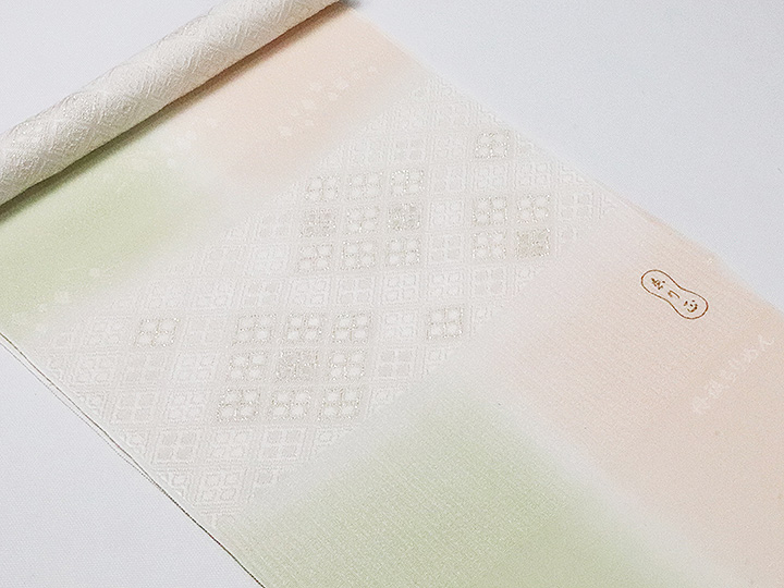 帯揚げ 「縫取しあわせ菱」 カラー: 洗柿/裏葉柳(03) 素材:絹100%(一部金属糸使用) 日本製 <ERISHO ORIGINAL>
