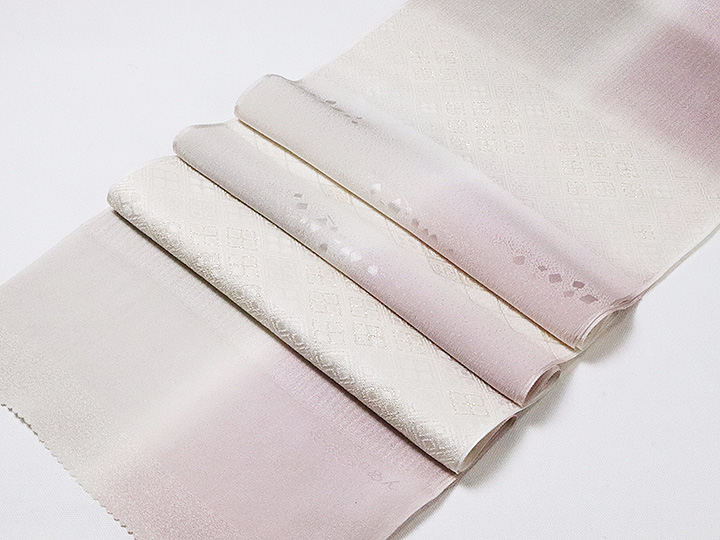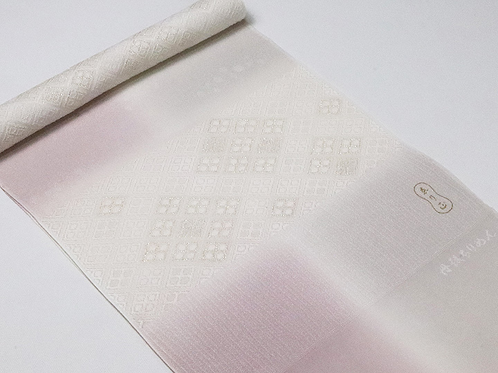 帯揚げ 「縫取しあわせ菱」 カラー: 薄梅鼠/鴇鼠(05) 素材:絹100%(一部金属糸使用) 日本製 <ERISHO ORIGINAL>