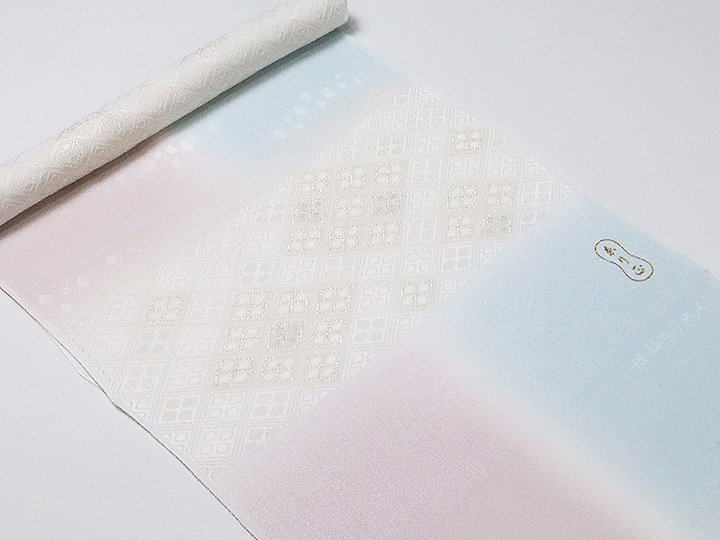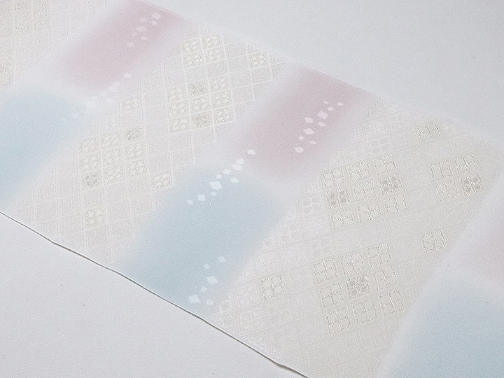 和装小物 > 帯揚げ > 帯揚げ 縫取しあわせ菱 > 帯揚げ 縫取しあわせ菱 白藍(しらあい)/淡紅藤(あわべにふじ)(06)