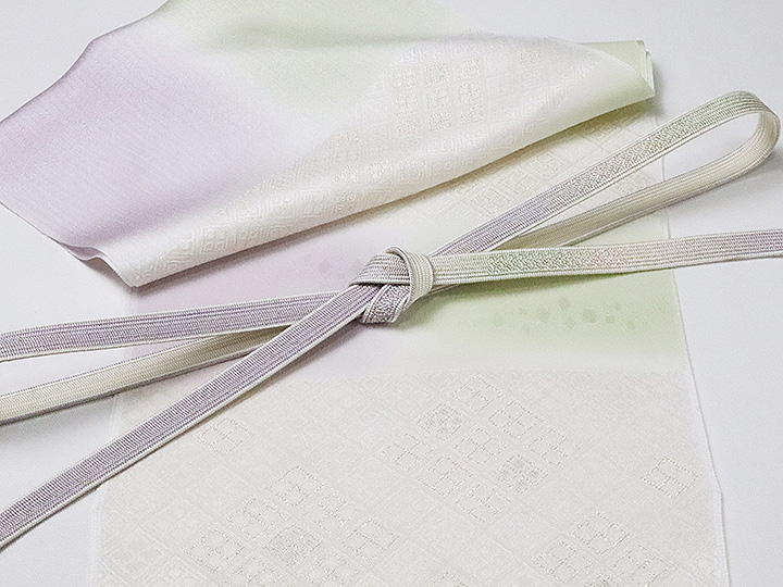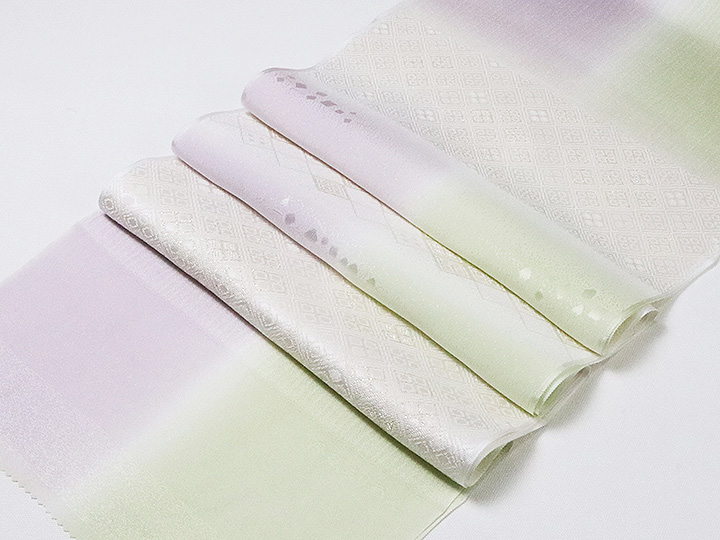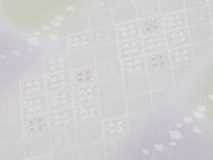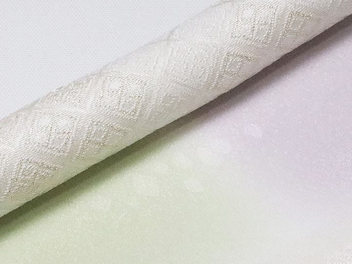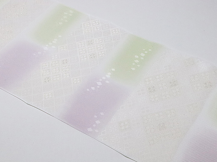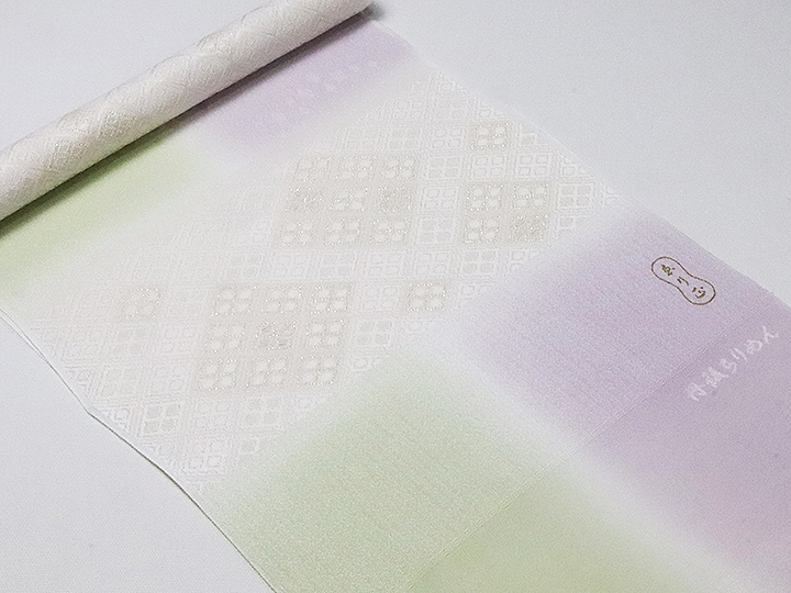 和装小物 > 帯揚げ > 帯揚げ 縫取しあわせ菱 > 帯揚げ 縫取しあわせ菱 白藤色(しらふじいろ)/白緑(びゃくろく)(08)