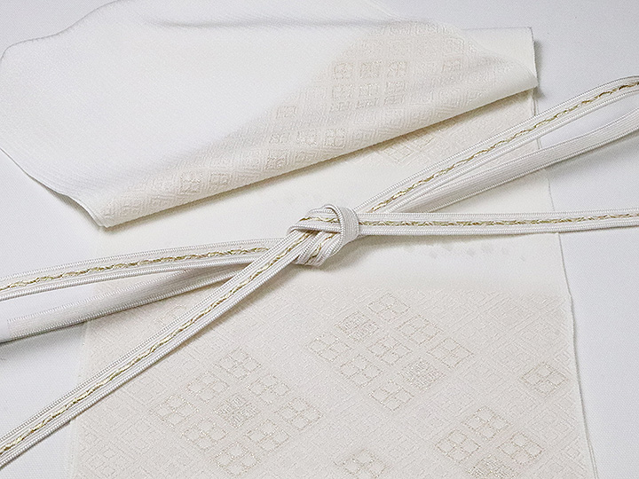 イメージとして一緒に写っている帯締めは<角朝枡花青海撚房 白/金(07)>でございます。