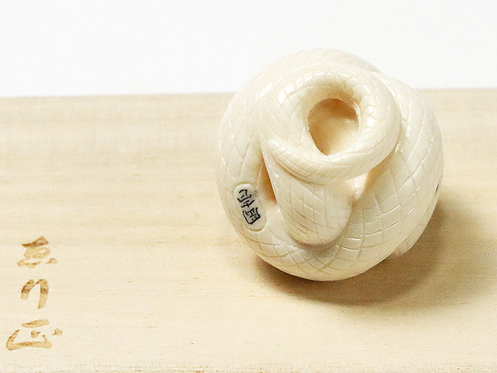 今の時代、入手困難な<象牙>を贅沢に使った貫禄の逸品「白蛇」の根付。