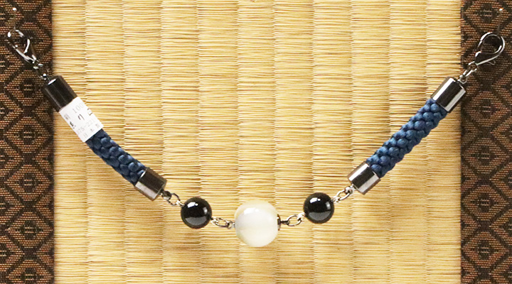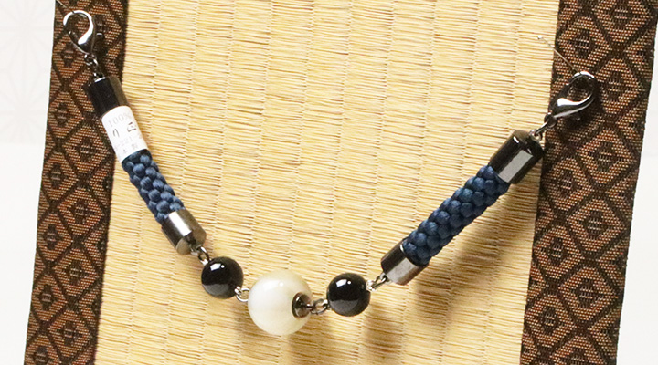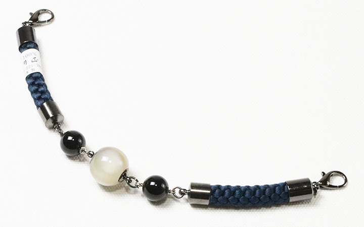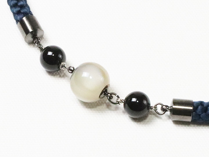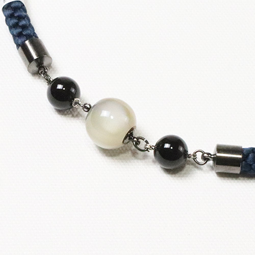 紳士羽織紐 無双 マグネット 天然石/ラクト玉 カラー: 濃紺/オニキス (07) 素材: 本体)絹100% 中央石)ラクト玉、側石)天然石、マグネット、カニカン
