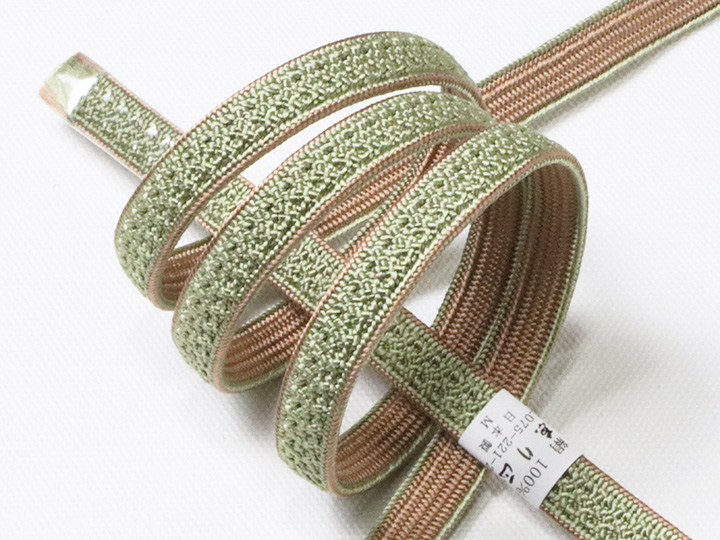 和装小物 > 帯締め > 帯締め 綾高麗耳付昼夜【A】 > 帯締め 綾高麗耳付昼夜【A】 山葵色(わさびいろ)/丁子茶(ちょうじちゃ)(04)