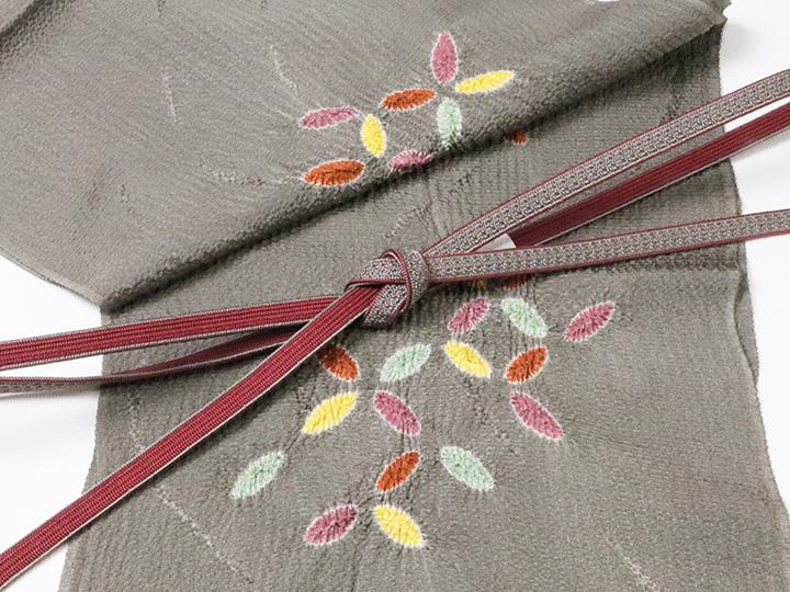 一緒に写っております帯揚げは、「小帽子やぶれ七宝 (08)」でございます。