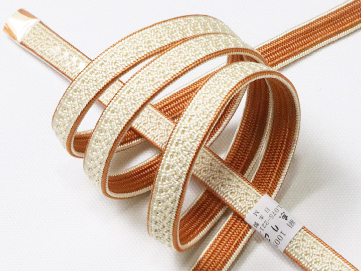 四分紐 「綾高麗耳付昼夜【A】」 カラー: 練色/赤朽葉色(02) 素材: 絹100% 日本製 <ERISHO ORIGINAL>