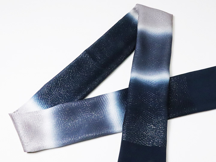 帯揚げ 「二色段染め銀通し」 カラー: (01) 素材: 絹 100%(一部金属糸使用) 日本製