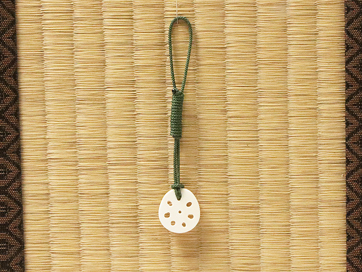 毎回すぐに売り切れてしまう人気のれんこん根付・・・♪♪ レンコンは<見通しが良い>と言われる縁起モノ。 今の時代めったに手に入らない超貴重素材の<象牙製>・・・。 場面の大きさ、カットの厚み、夫々に表情違いの一点モノでございます。 小ぶりな作品ではありますが、存在感は充分感じていただけると思います。 女性にもぶら提げていただきやすい一品です。 大きさ:約1.8cm×約2.1cm