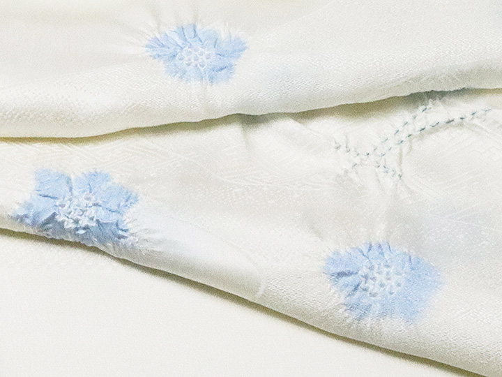 帯揚げ 「輪出し吹き寄せ」 カラー:オフホワイト/勿忘草色(05) 素材:絹100% 日本製 <ERISHO ORIGINAL>