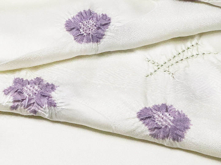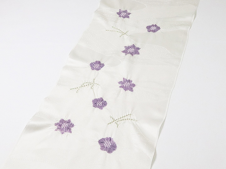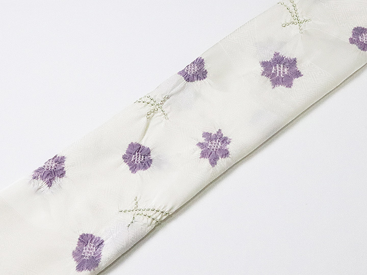 和装小物 > 帯揚げ > 帯揚げ 輪出し吹き寄せ > 帯揚げ 輪出し吹き寄せ オフホワイト/藤紫(ふじむらさき)(11)