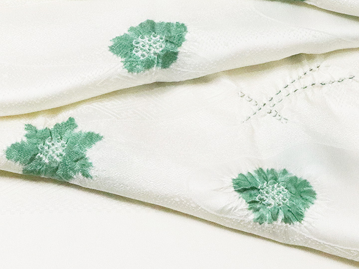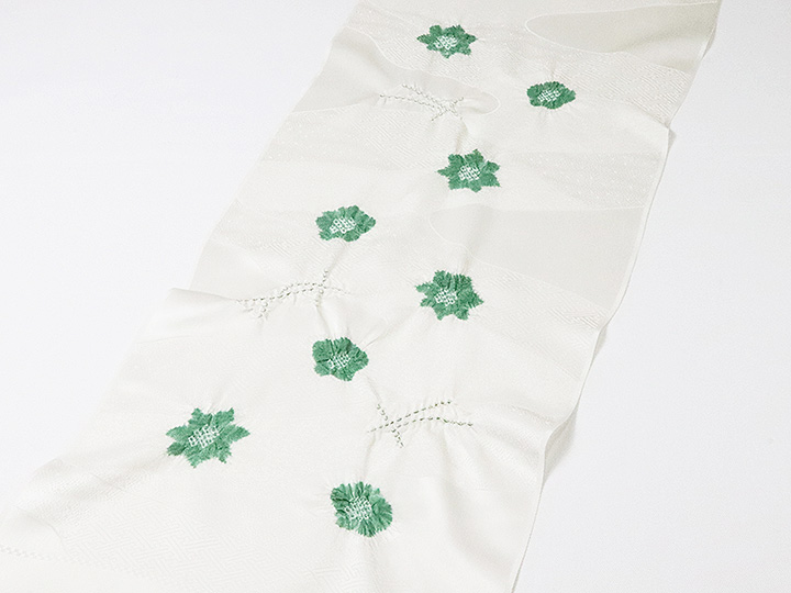 帯揚げ 「輪出し吹き寄せ」 カラー:オフホワイト/緑青色(42) 素材:絹100% 日本製 <ERISHO ORIGINAL>