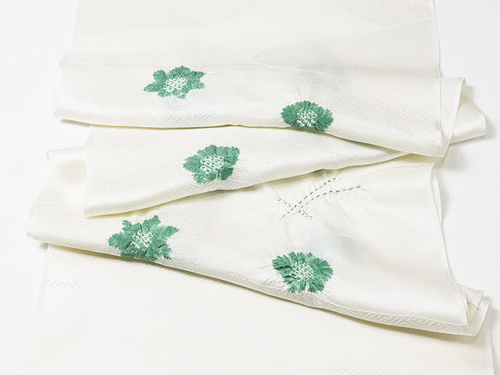 和装小物 > 帯揚げ > 帯揚げ 輪出し吹き寄せ > 帯揚げ 輪出し吹き寄せ オフホワイト/緑青色(ろくしょういろ)(42)