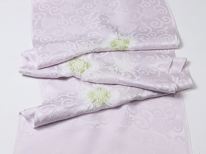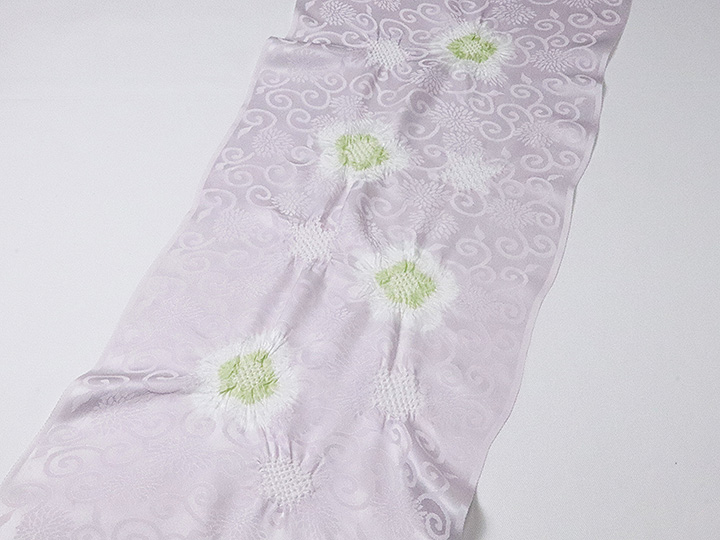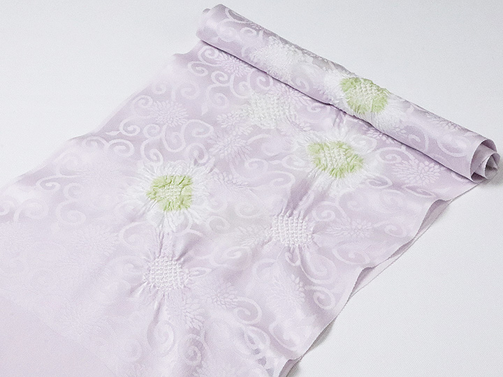 帯揚げ 「輪出し白場取り小花」 カラー: 白藤色/裏葉柳(52) 素材:絹100% 日本製 <ERISHO ORIGINAL>