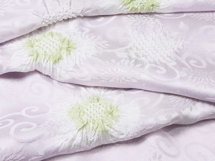 和装小物 > 帯揚げ > 帯揚げ 輪出し白場取り小花 > 帯揚げ 輪出し白場取り小花 白藤色(しらふじいろ)/裏葉柳(うらはやなぎ)(52)