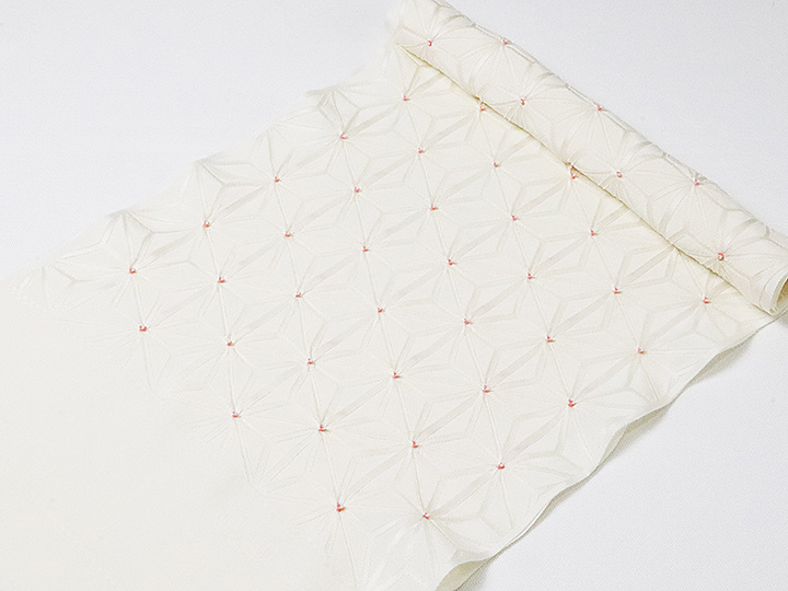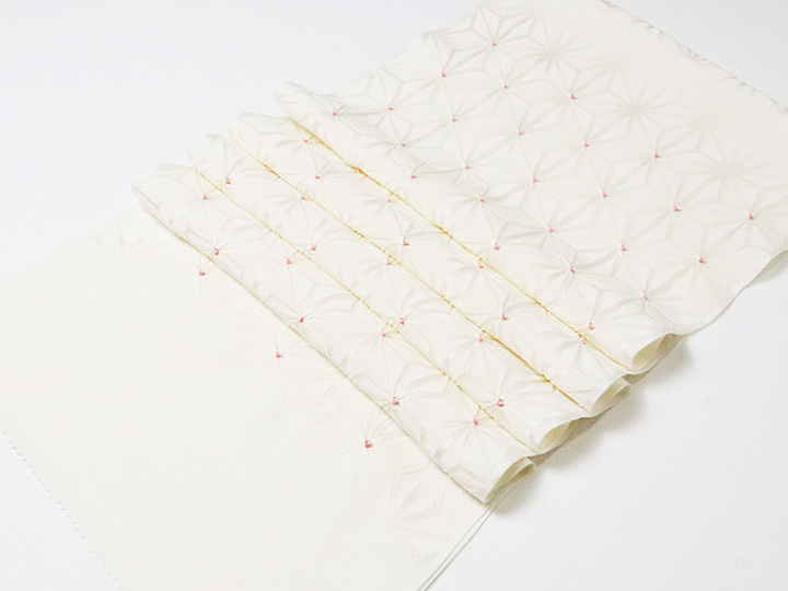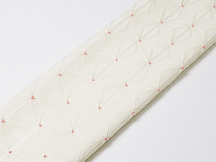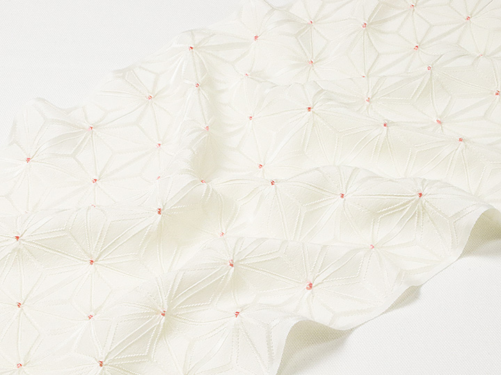 帯揚げ 「麻の葉ツマミ」 カラー: オフホワイト/甚三紅(51) 素材:絹100% 日本製 <ERISHO ORIGINAL>