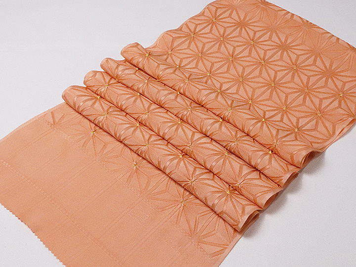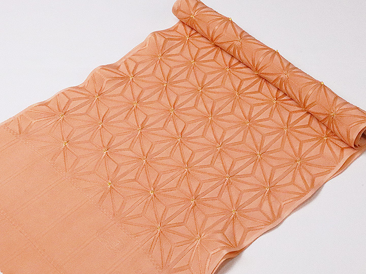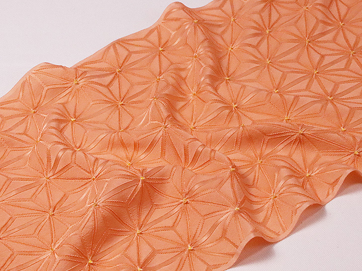帯揚げ 「麻の葉ツマミ」 カラー: 甚三紅/支子色(52) 素材:絹100% 日本製 <ERISHO ORIGINAL>