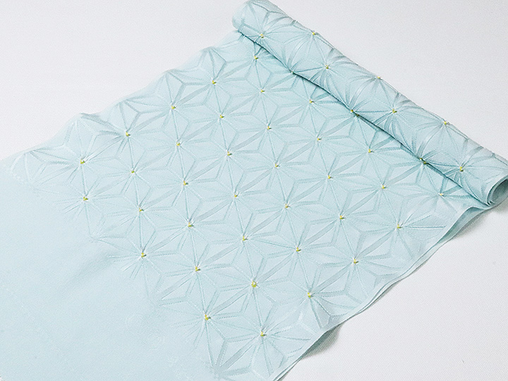帯揚げ 「麻の葉ツマミ」 カラー: 秘色色/黄檗色(53) 素材:絹100% 日本製 <ERISHO ORIGINAL>