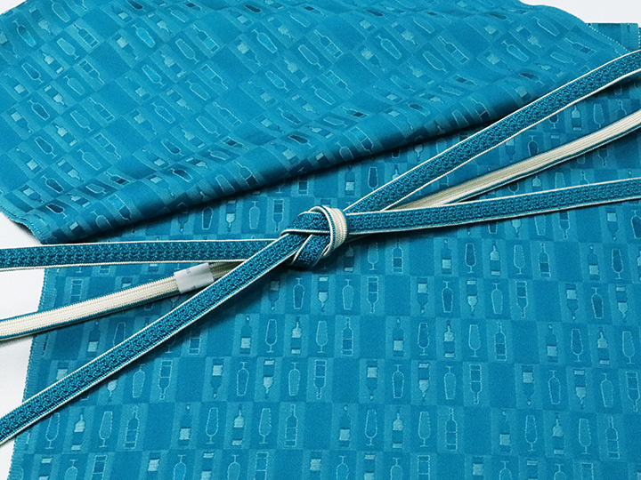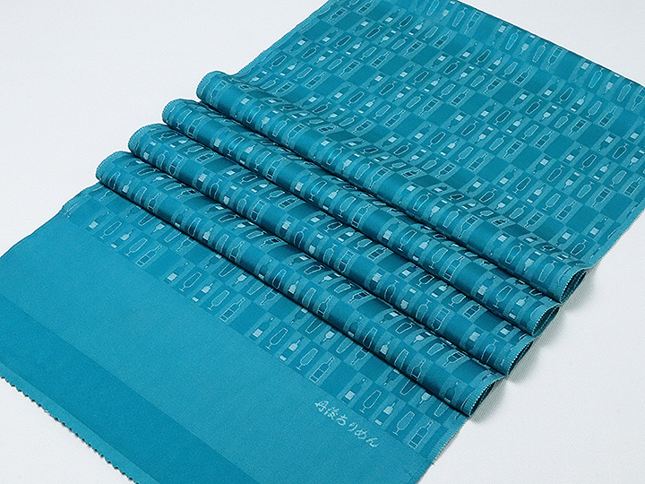 一緒に写っております帯締めは、「綾高麗耳付昼夜【A】 ターコイズブルー/オフホワイト(07)」でございます。