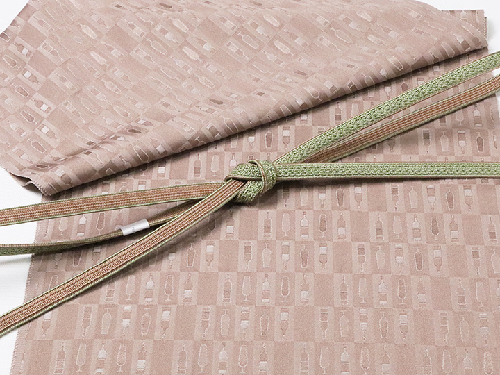 一緒に写っております帯締めは、「綾高麗耳付昼夜【A】 山葵色/丁子茶(04)」でございます。